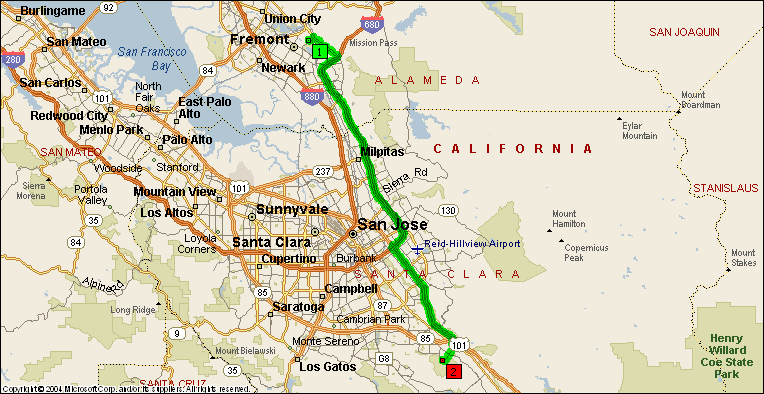 | 8:35 AM | 2.7 | Take Ramp (RIGHT) onto I-680 [Sinclair Fwy] for 16.0 mi towards I-680 / San Jose |